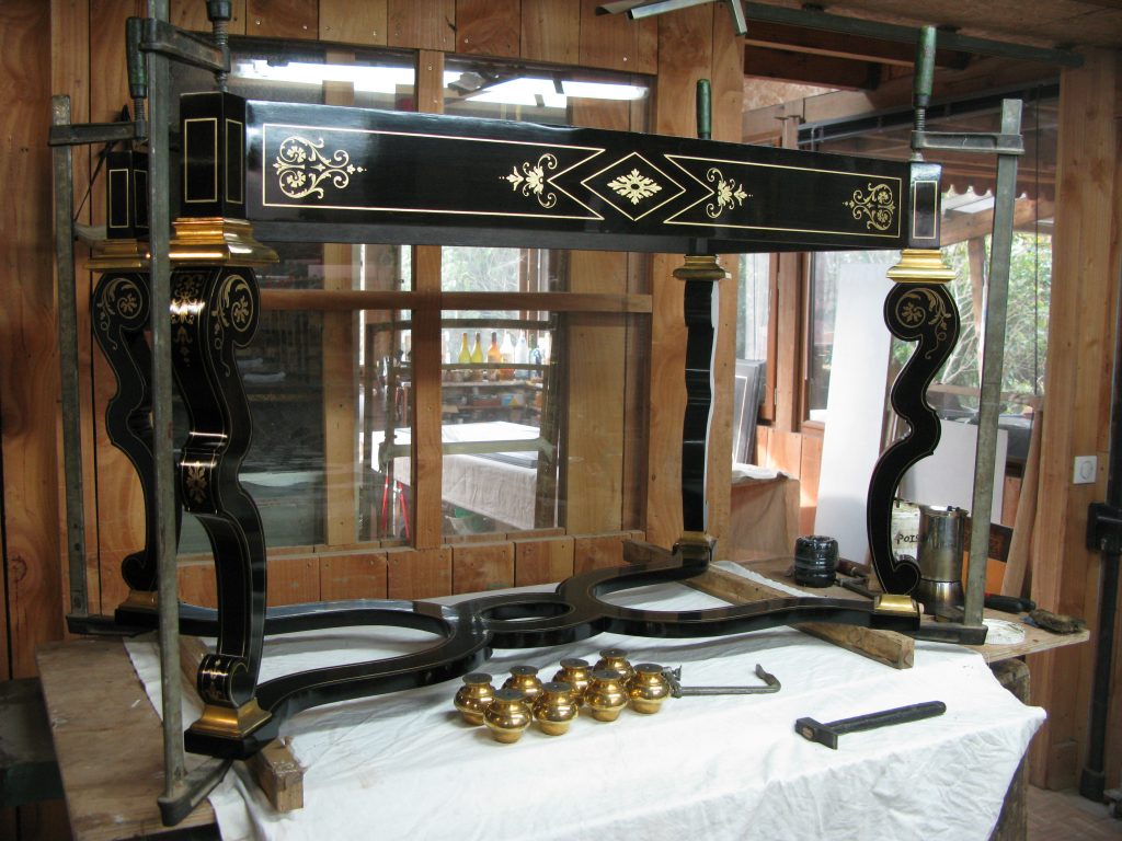 L’application des vernis suit un rituel immuable, développé au fil des siècles. Chaque couche est appliquée selon une gestuelle précise : le mouvement circulaire du tampon, la pression exacte exercée, le temps de séchage spécifique entre chaque application. Pour une finition parfaite, jusqu’à vingt-cinq couches successives peuvent être nécessaires, s’étendant sur plusieurs semaines pour permettre à chaque couche de développer ses qualités optiques et protectrices. Cette maîtrise permet d’obtenir des finitions d’une profondeur incomparable, où la lumière semble danser à la surface du bois.