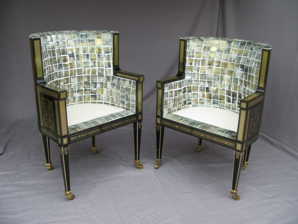 Restaurateurs meubles précieux fauteuils Boulle - Antique marquetry furniture restoration Paris EPV